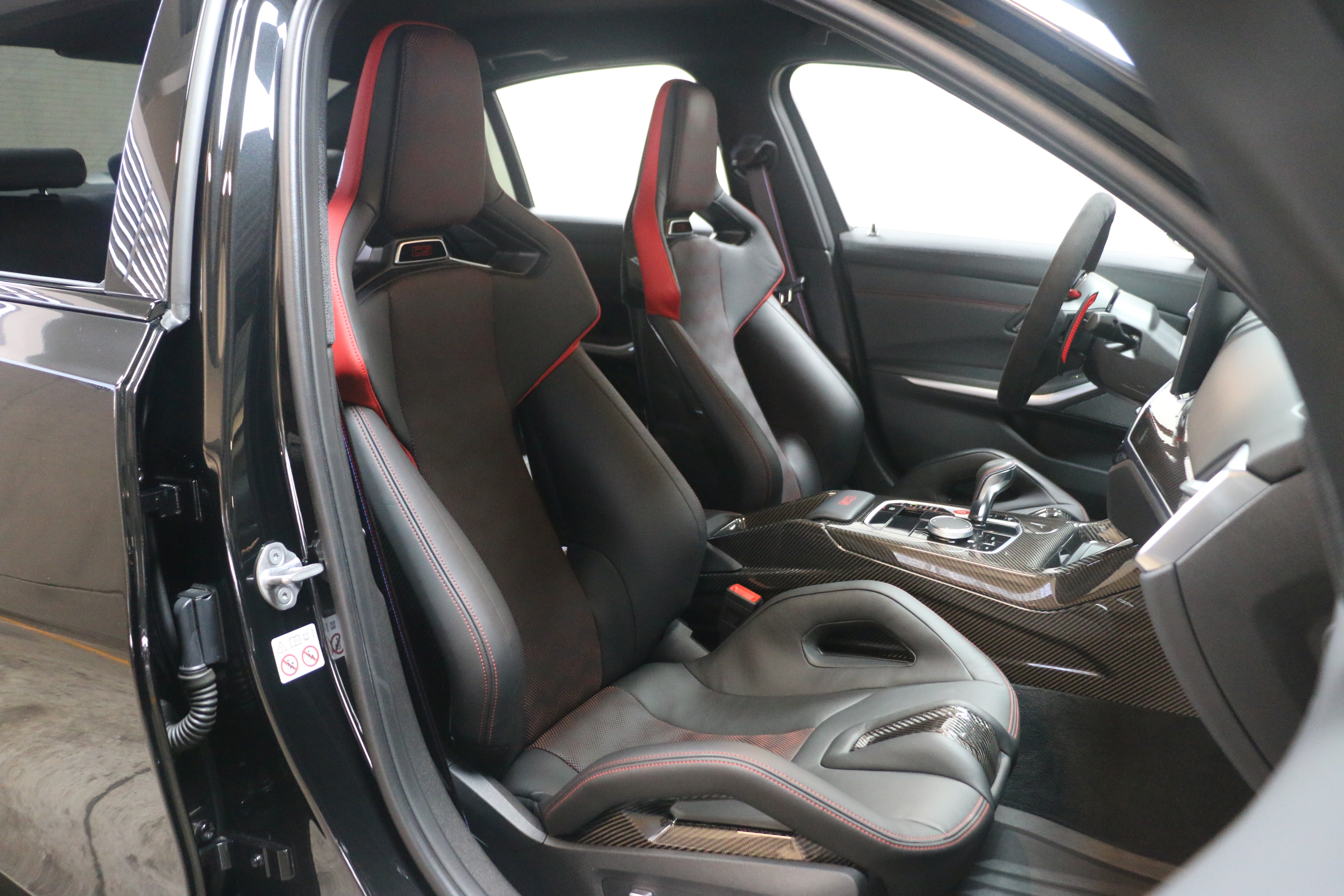 Este M3 CS incorpora múltiples componentes de plástico reforzado con fibra de carbono (CFRP), incluyendo cofre, techo, splitter delantero, tomas de aire, carcasas de retrovisores, difusor y alerón trasero. Además, cuenta con asientos tipo baquet M de fibra de carbono y un silenciador trasero de titanio, reduciendo el peso en 20kg respecto al M3 competition.
