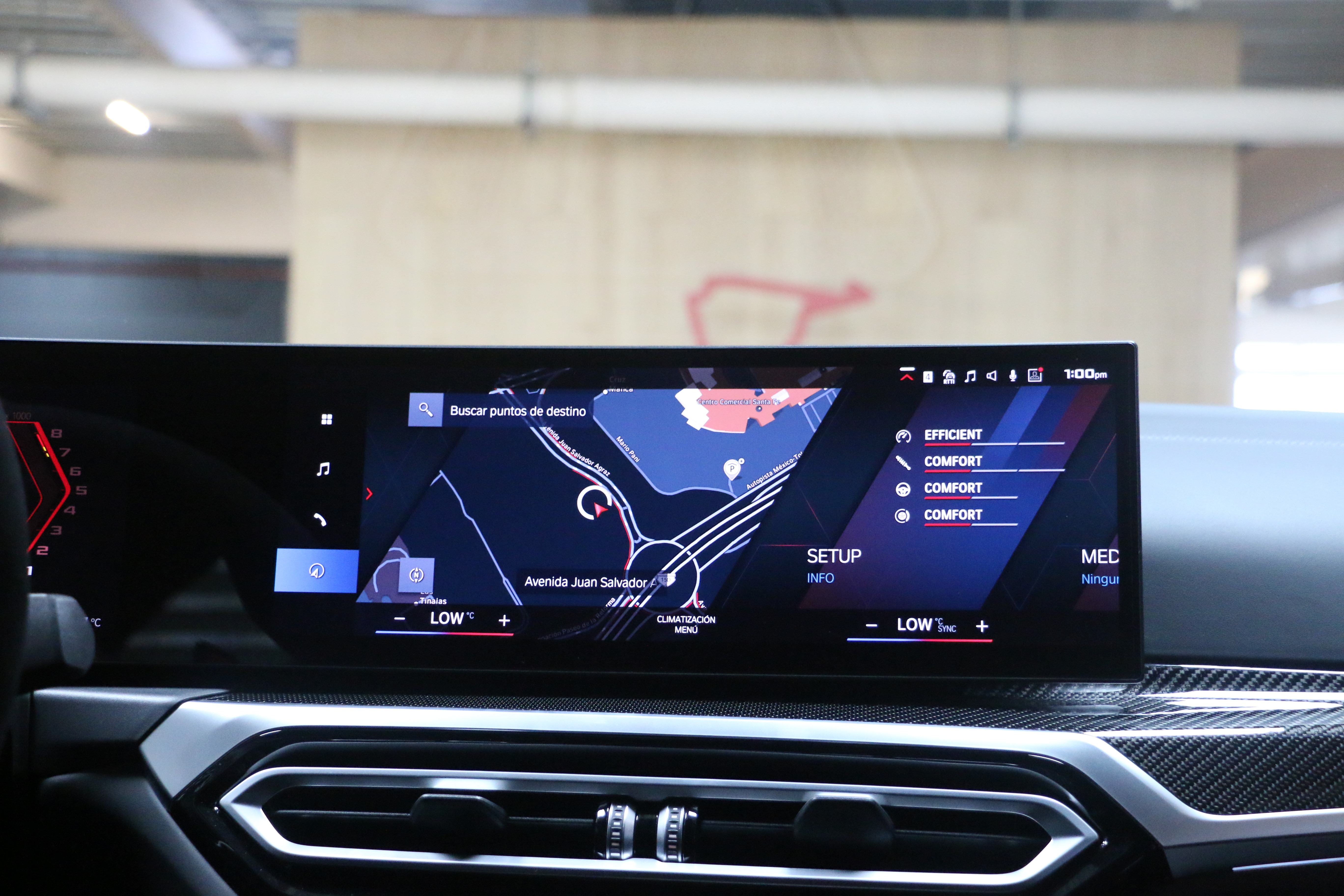 En el interior, se destacan los asientos deportivos M de fibra de carbono tipo cubo con logo M iluminado, sistema de sonido premium Harman Kardon, BMW Head-Up Display y una pantalla curva con cuadro de instrumentos digital de 12.3” y pantalla central táctil de 14.9”.