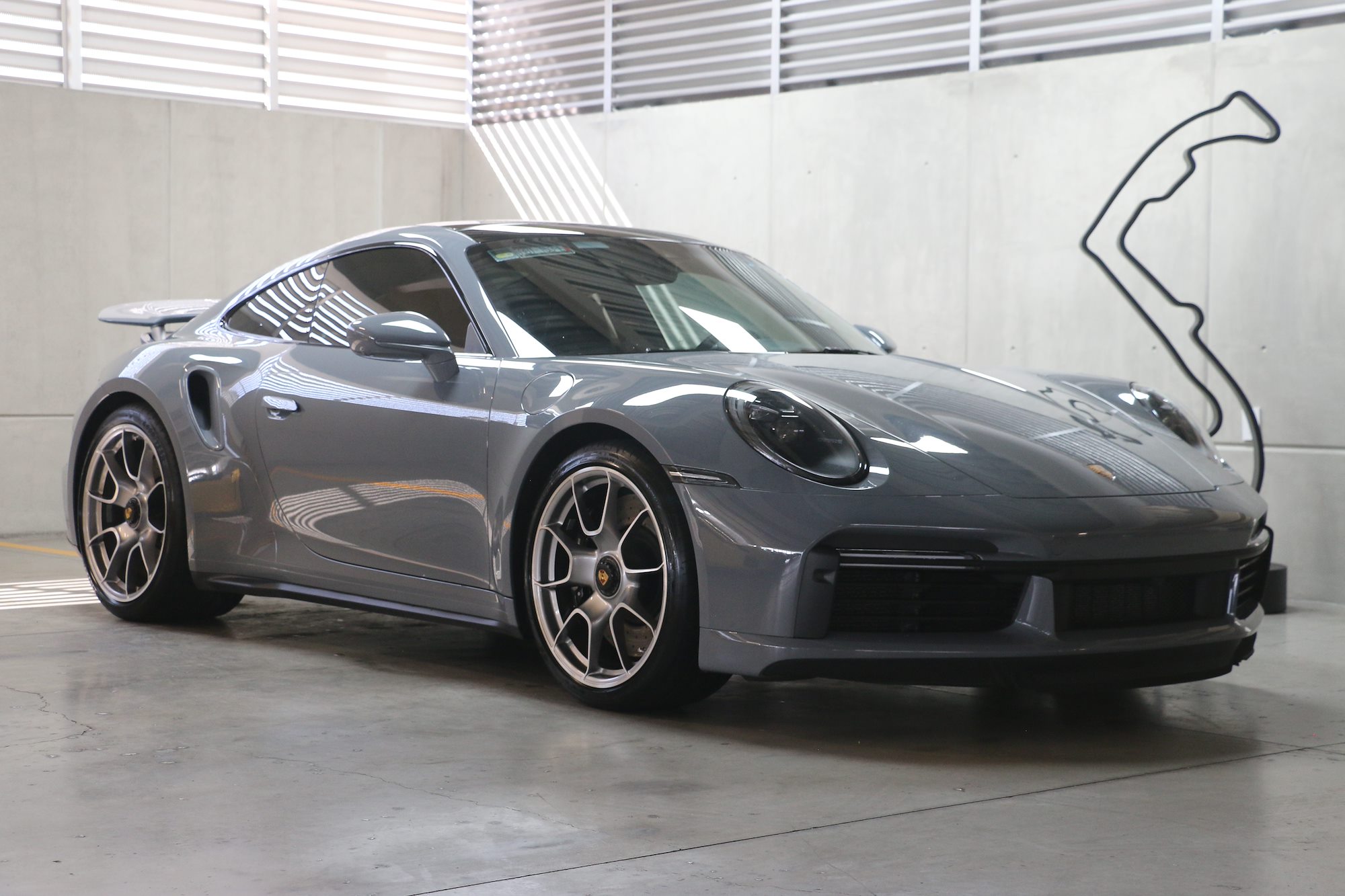 El Porsche 911 Turbo es uno de los modelos más legendarios de la historia de la marca. Terminado en Arctic Grey, logra un balance muy fino entre sobriedad y agresividad. Es un color que resalta los volúmenes anchos del 992 Turbo. Los rines 911 Turbo S Exclusive Design elevan inmediatamente la presencia del auto, mientras que las bases de espejos y tomas de aire traseras pintadas al color exterior limpian visualmente el conjunto. Las pinzas de freno en negro mantienen la elegancia sin romper la armonía del conjunto.